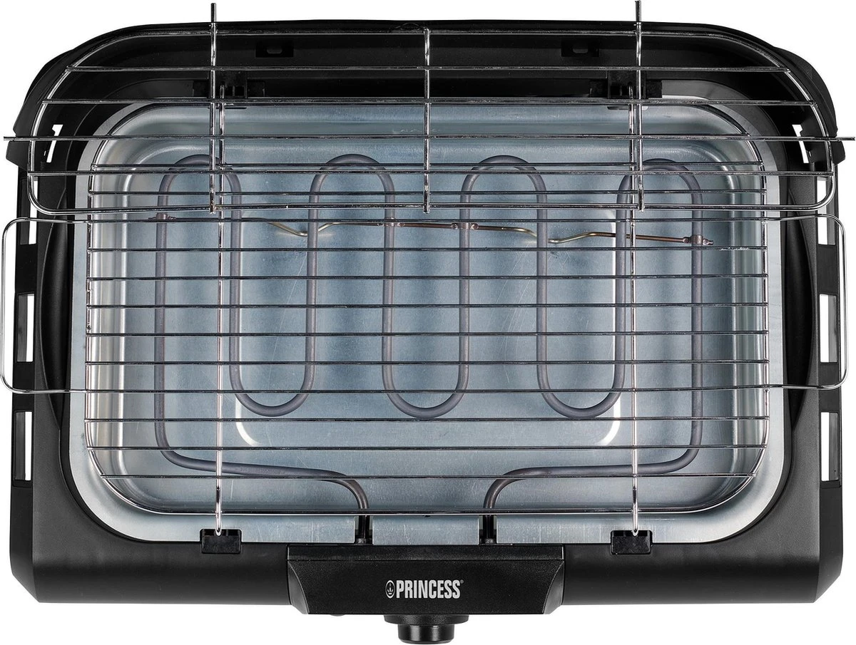 Princess 112250 Elektrische BBQ Met Zijplanken – BBQ – 40x25cm – Met En Zonder Statief Te Gebruiken – Met Zijplankjes – Ook Te Gebruiken Als Tafelgrill – 2200W